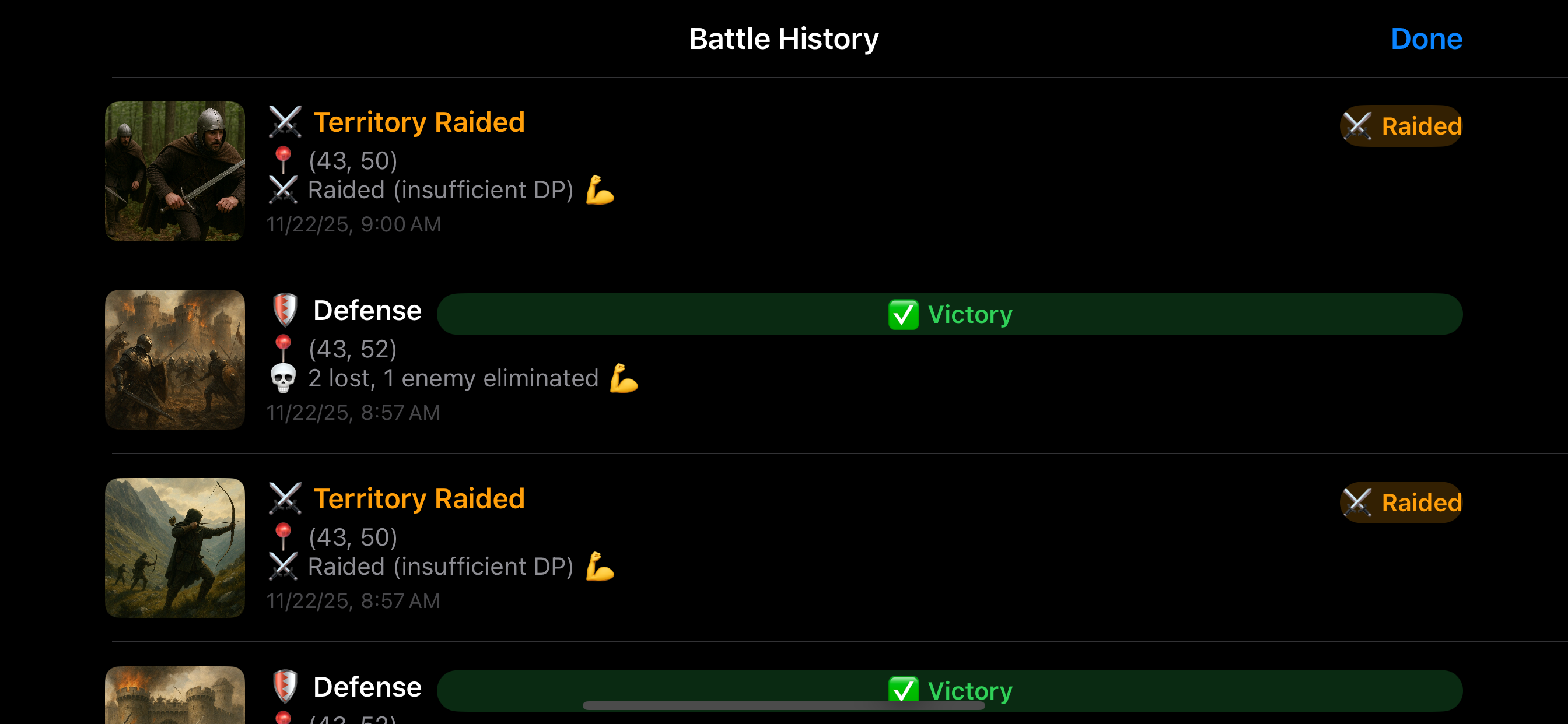 - Launch real-time attacks with travel timers and dynamic battle outcomes